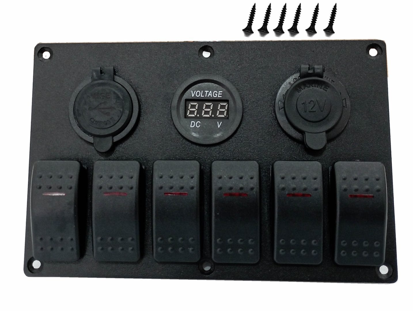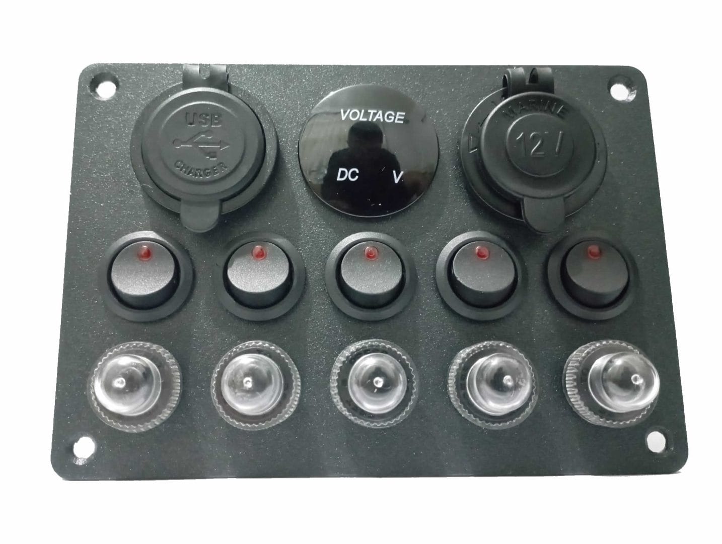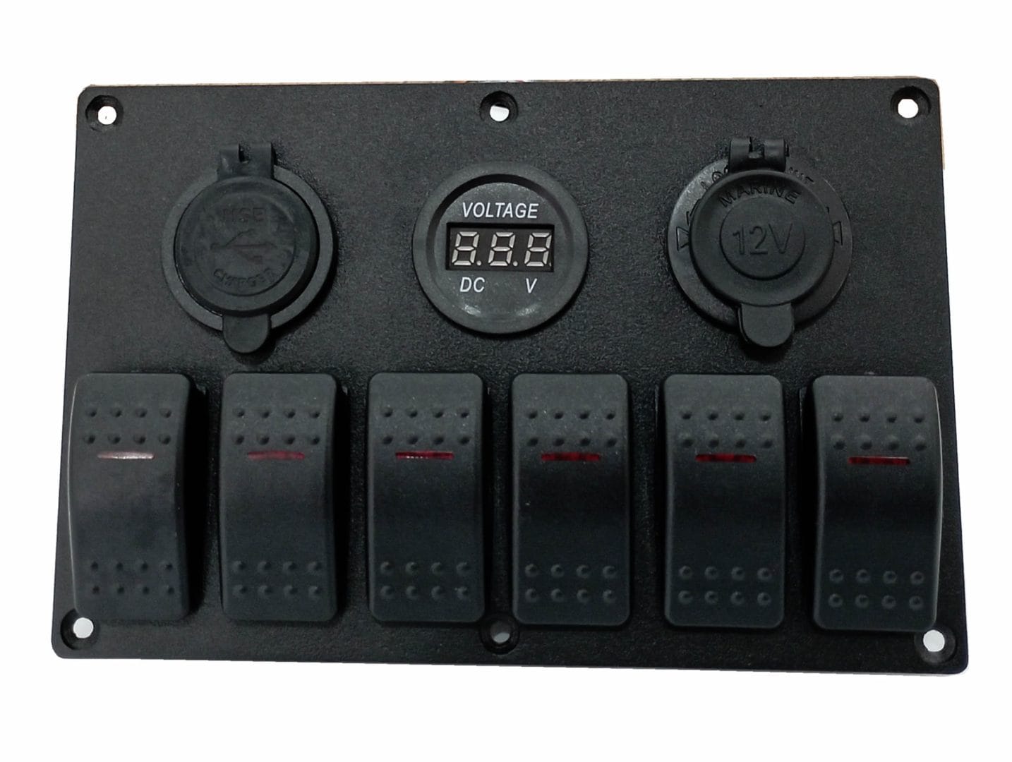 6 Adet 12 Volt Ledli Swithc, Çakmaklık,Usb sarj ve voltmetre göstergeli switch panel.